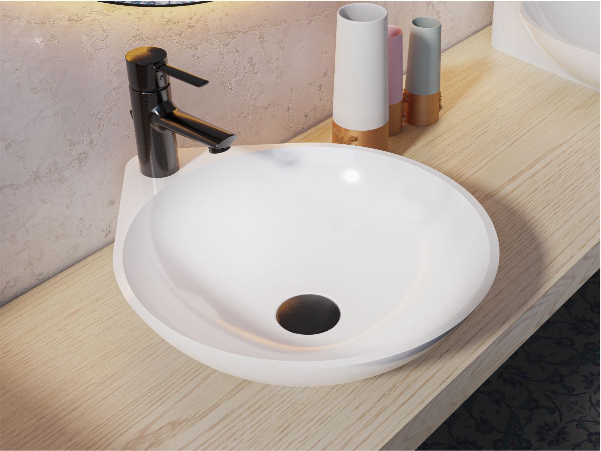 Деякі моделі умивальників можуть виготовлятися з кварцевого піску (варіація моделей обмежена) та мати чорне або сіре забарвлення. Такі вироби чудово підійдуть для дизайну в стилі лофт.