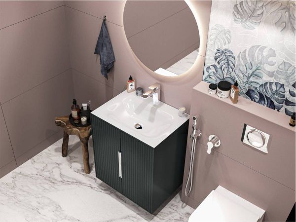 Для отримання індивідуального дизайну сантехніки, ви можете обрати будь-який відтінок з палітри RAL, який наноситься на зовнішню поверхню продукції. Умивальник Miraggio JESSEL 600 MATT з литого мармуру також може мати кольоровий глянцевий фініш.