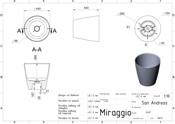 Умивальник Miraggio SAN ANDREAS MIRASOFT з литого мармуру Miraggio . Литий мармур — твердий та довговічний матеріал. Основним компонентом суміші є мелена мармурова крихта, яку змішують з поліефірними смолами. Раковина покривається антибактеріальним гелем Gelcoat ISO NPG, який робить виріб міцним та білосніжним.