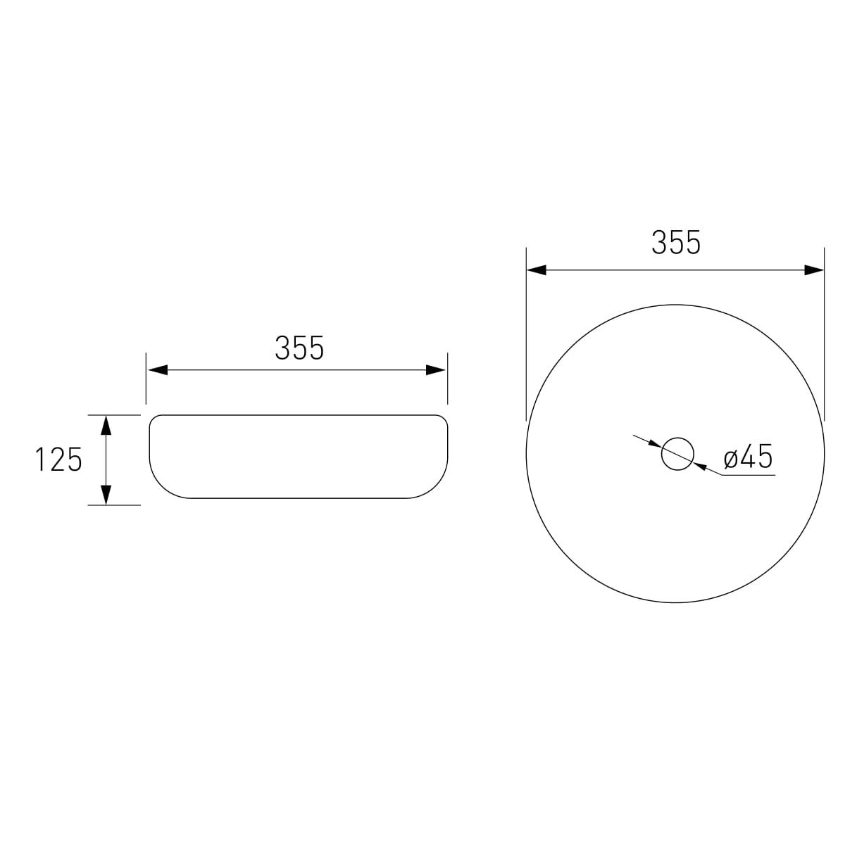 Volle умивальник 355*355*125 мм, накладний, круглий, без переливу, без отвору для змішувача, матовий.
