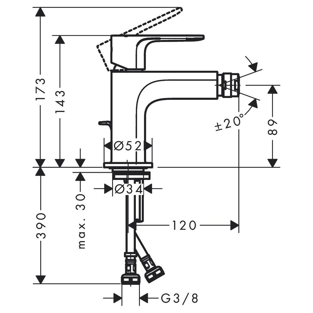 Змішувач для біде Hansgrohe REBRIS E з донним клапаном, хром | 72211000