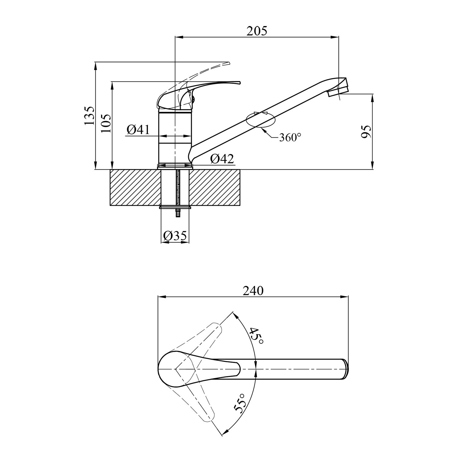 Висота змішувача, мм:95