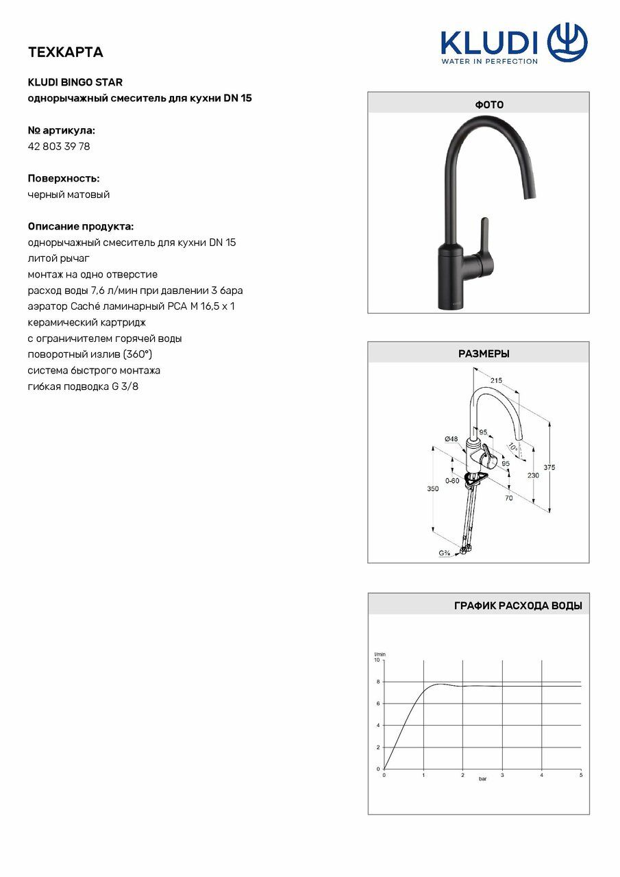 Змішувач для кухні DN 15 Bingo Star (428033978) чорний Kludi | 428033978