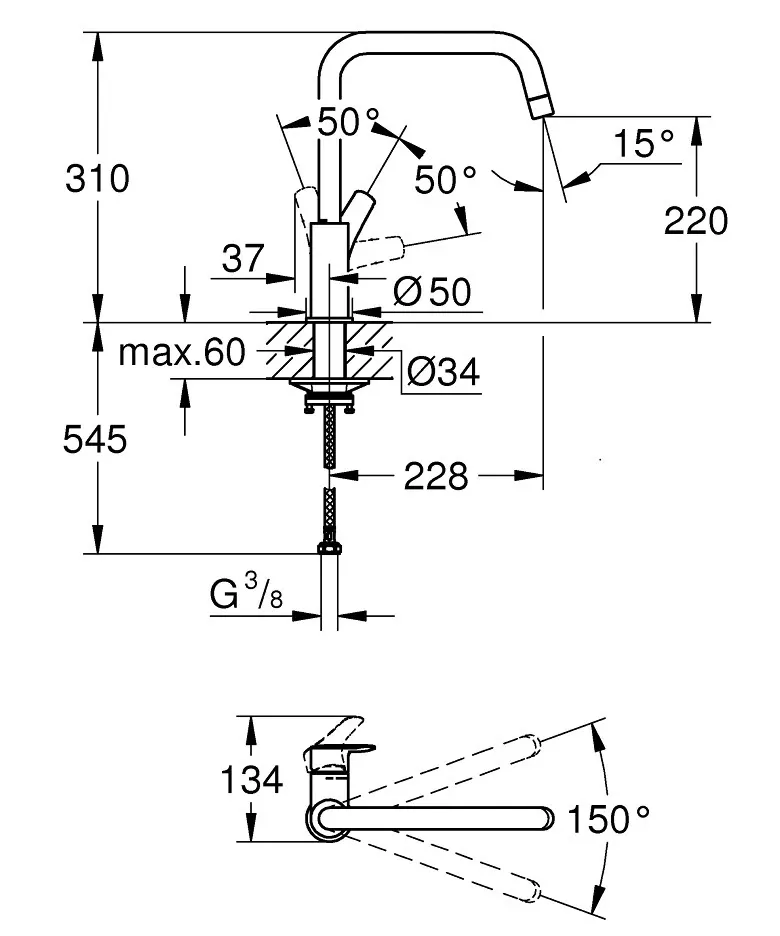 Висота змішувача, мм:310