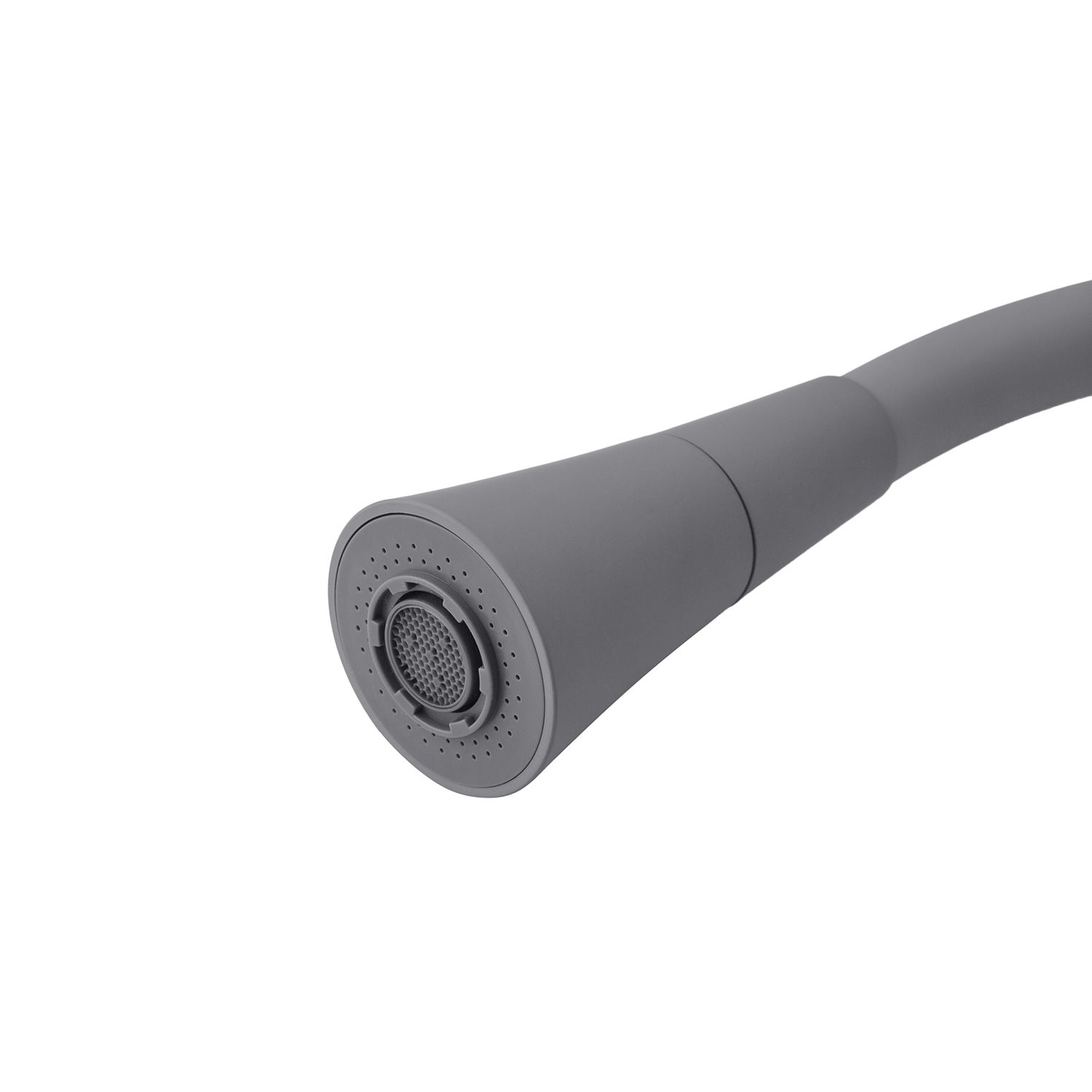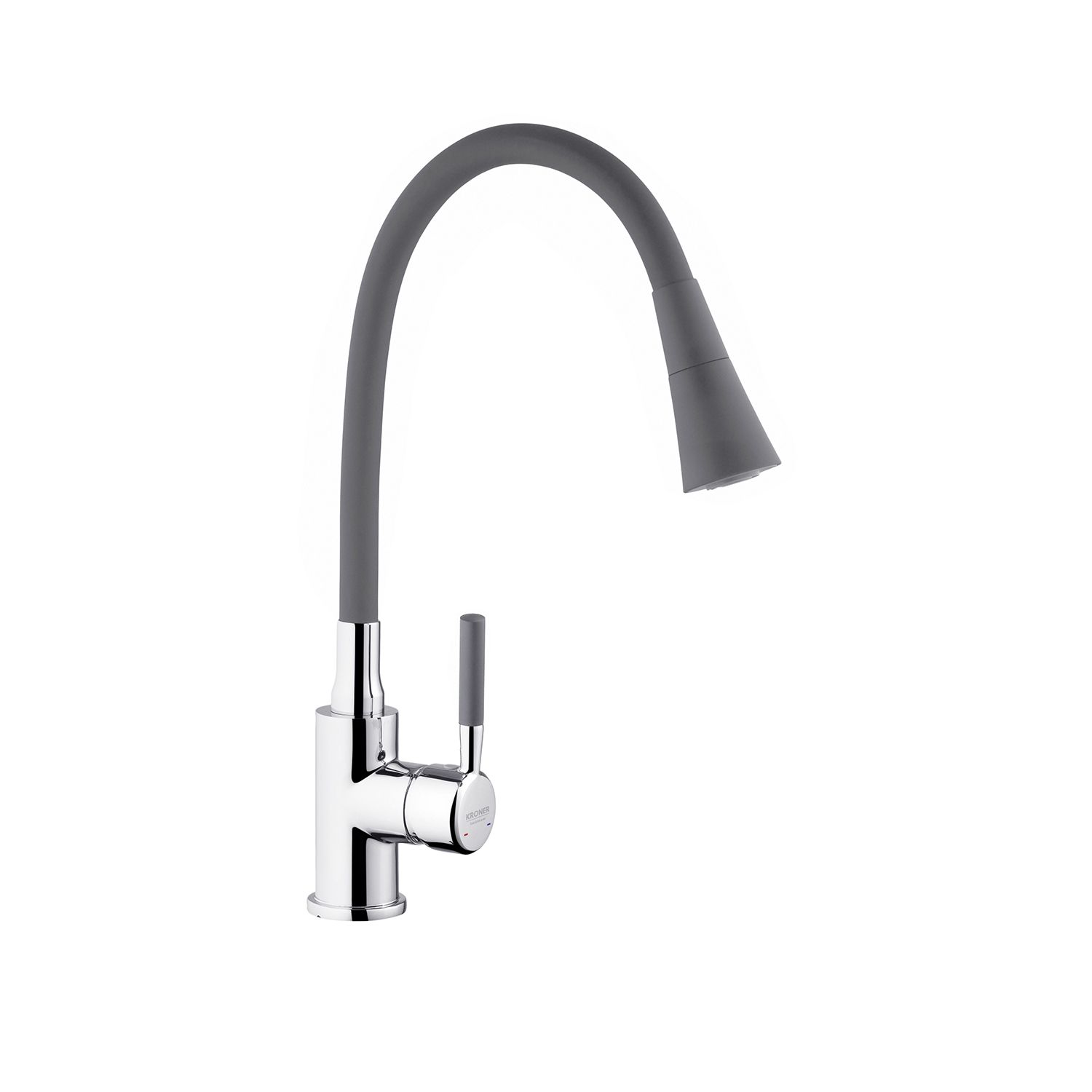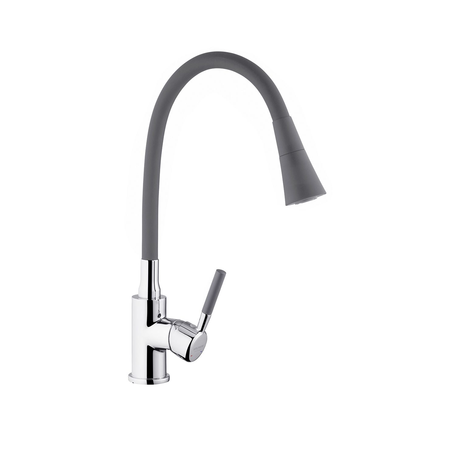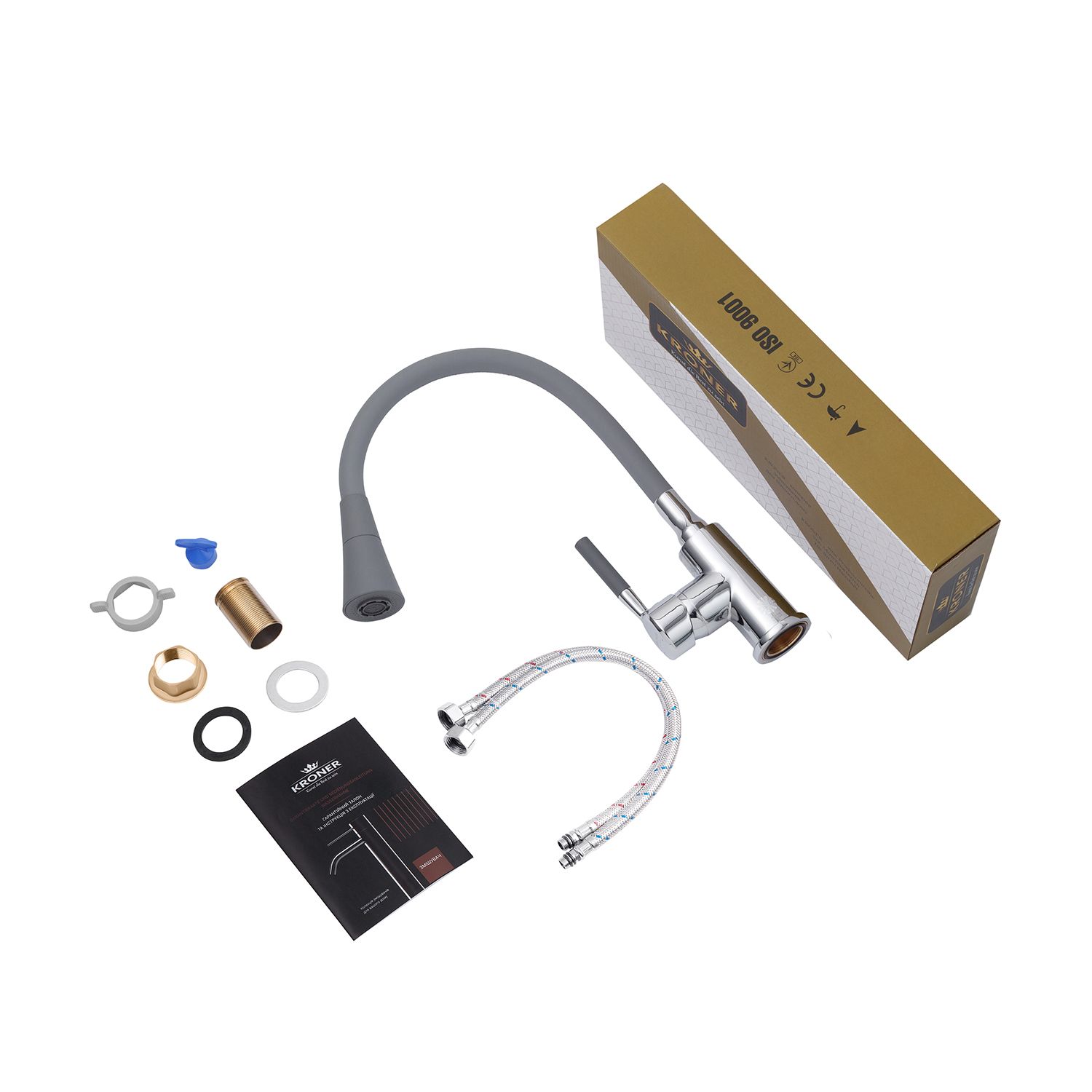 Змішувач для кухні Kroner KRM Kuche - C132GRA - це стильний та функціональний варіант для вашої кухні. Виготовлений з високоякісного силуміну з силіконовим виливом, він поєднує в собі міцність і зручність в експлуатації. Одноважільне керування дозволяє з легкістю регулювати температуру та потік води.