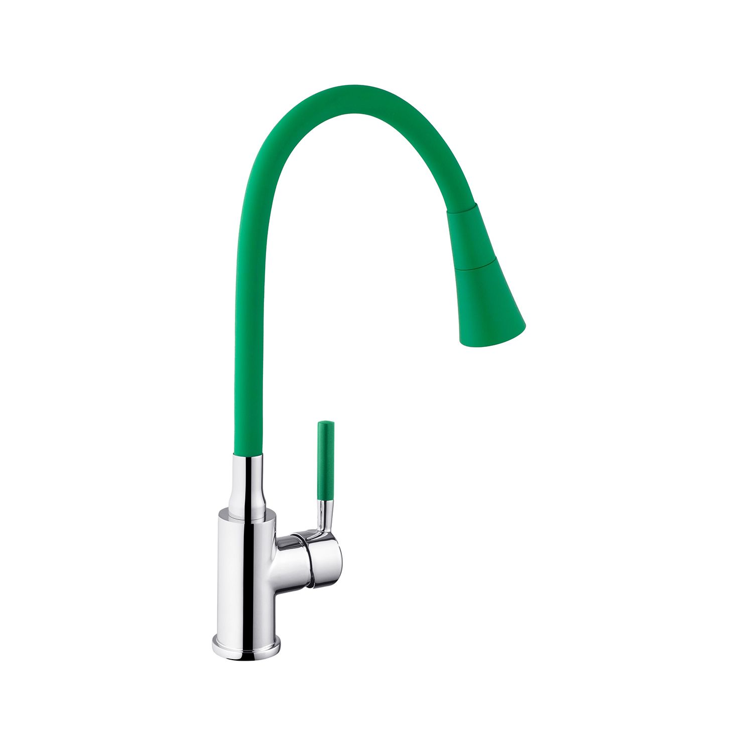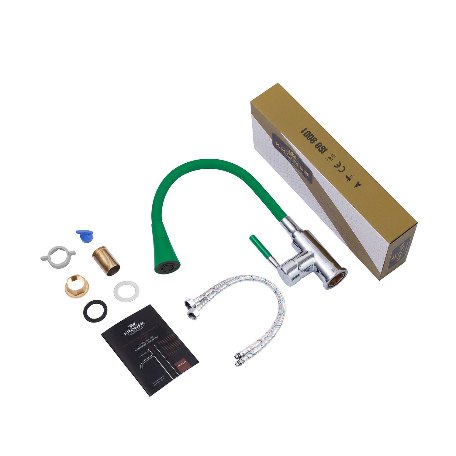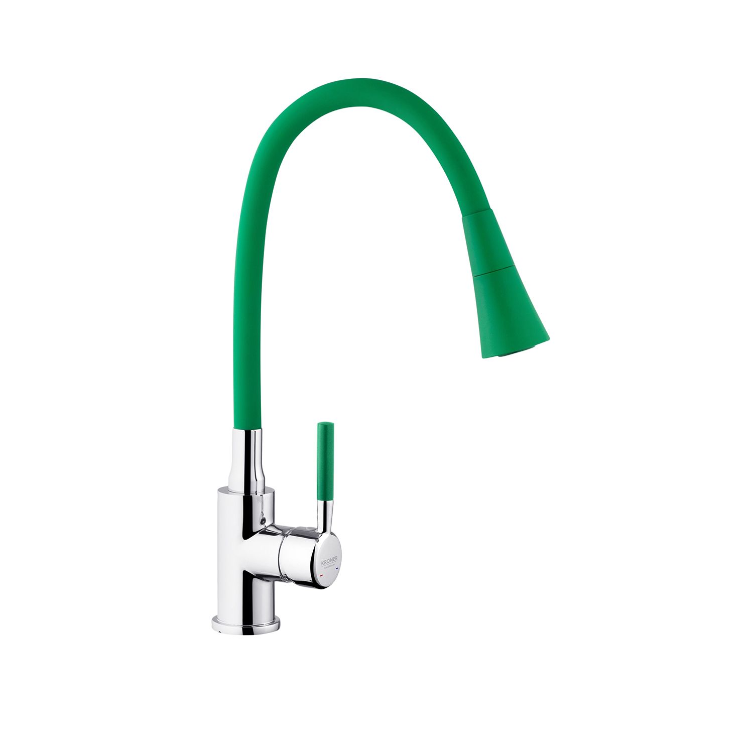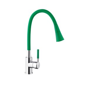 Змішувач для кухні Kroner KRM Kuche - C132GRN - це стильний та функціональний варіант для вашої кухні. Виготовлений з високоякісного силуміну з силіконовим виливом, він поєднує міцність і зручність в експлуатації. Одноважільне керування дозволяє легко регулювати температуру і потік води.