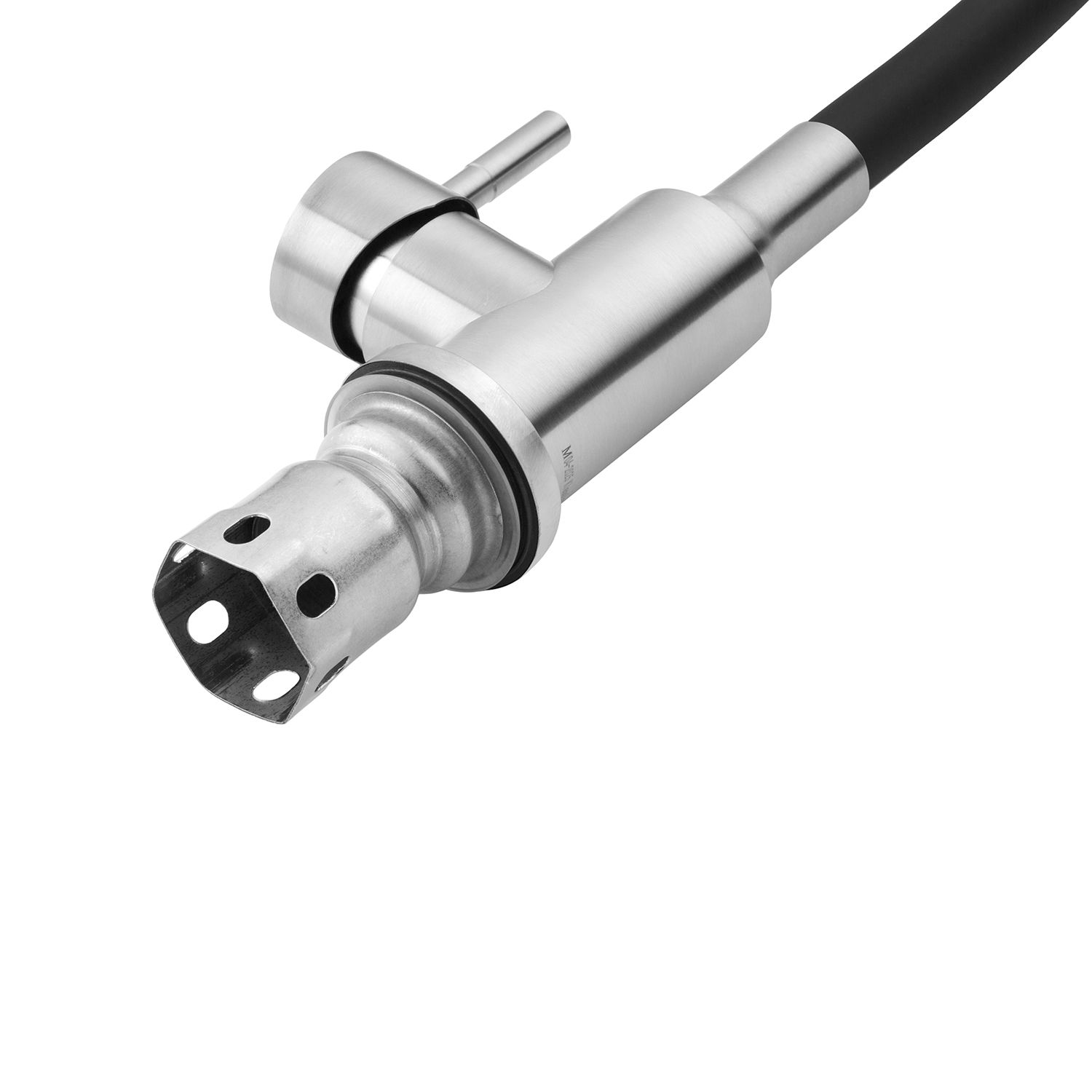 Корпус виконаний з високоякісної нержавіючої сталі, що гарантує стійкість до корозії та довговічність. Гнучкий вилив із силіконового пластику забезпечує зручний напрямок потоку води та підходить для миття великого посуду або важкодоступних куточків раковини.