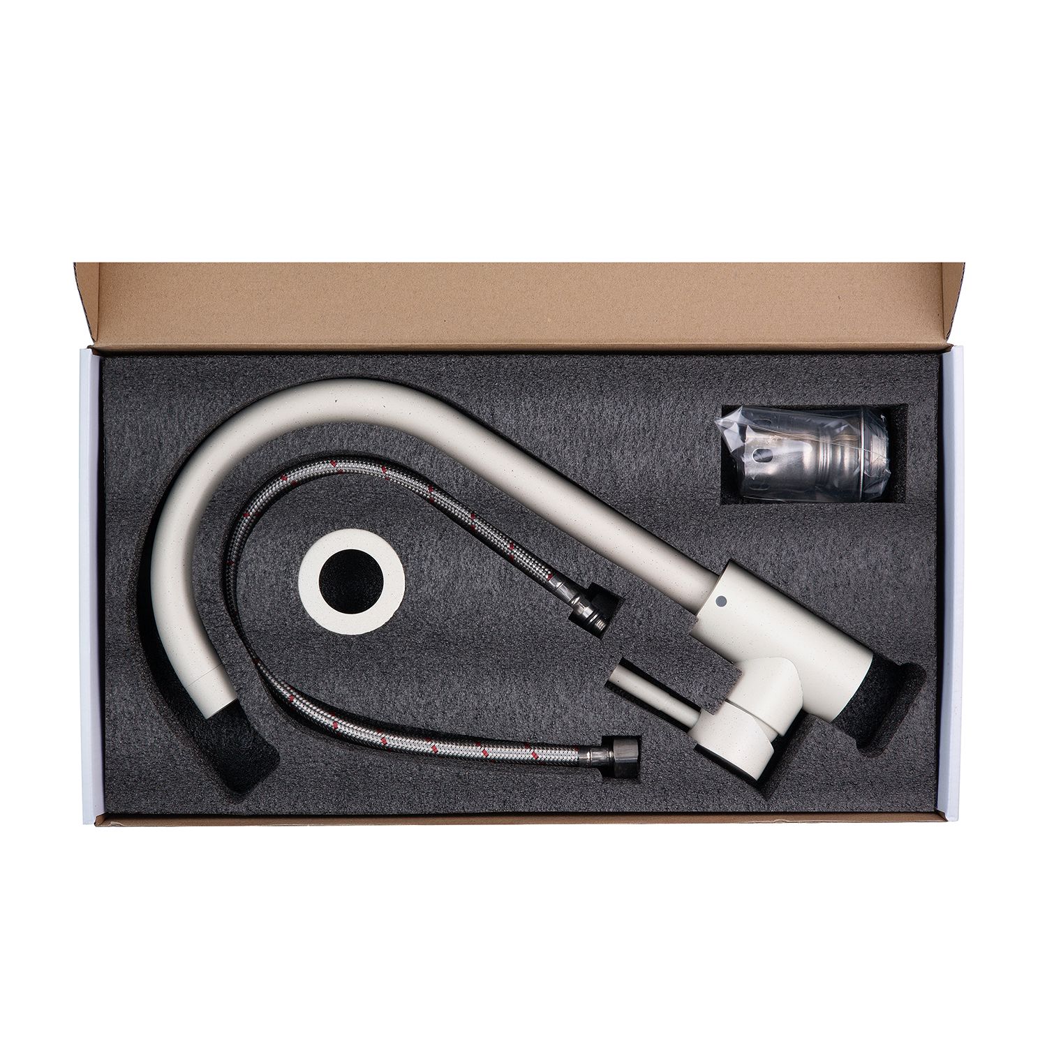Змішувач для кухні Kroner KRP Edelstahl Klassisch - WEI035 - ідеальний вибір для вашої кухні. Виготовлений із нержавіючої сталі, він гарантує міцність та довговічність. Має привабливий матовий білий колір, що додає йому елегантності. Змішувач оснащений картриджним механізмом змішування, що дозволяє зручно регулювати температуру води. Його унікальна U-подібна форма виливу забезпечує зручність під час наповнення посуду або миття продуктів. Насолоджуйтесь функціональністю та стилем змішувача Kroner.