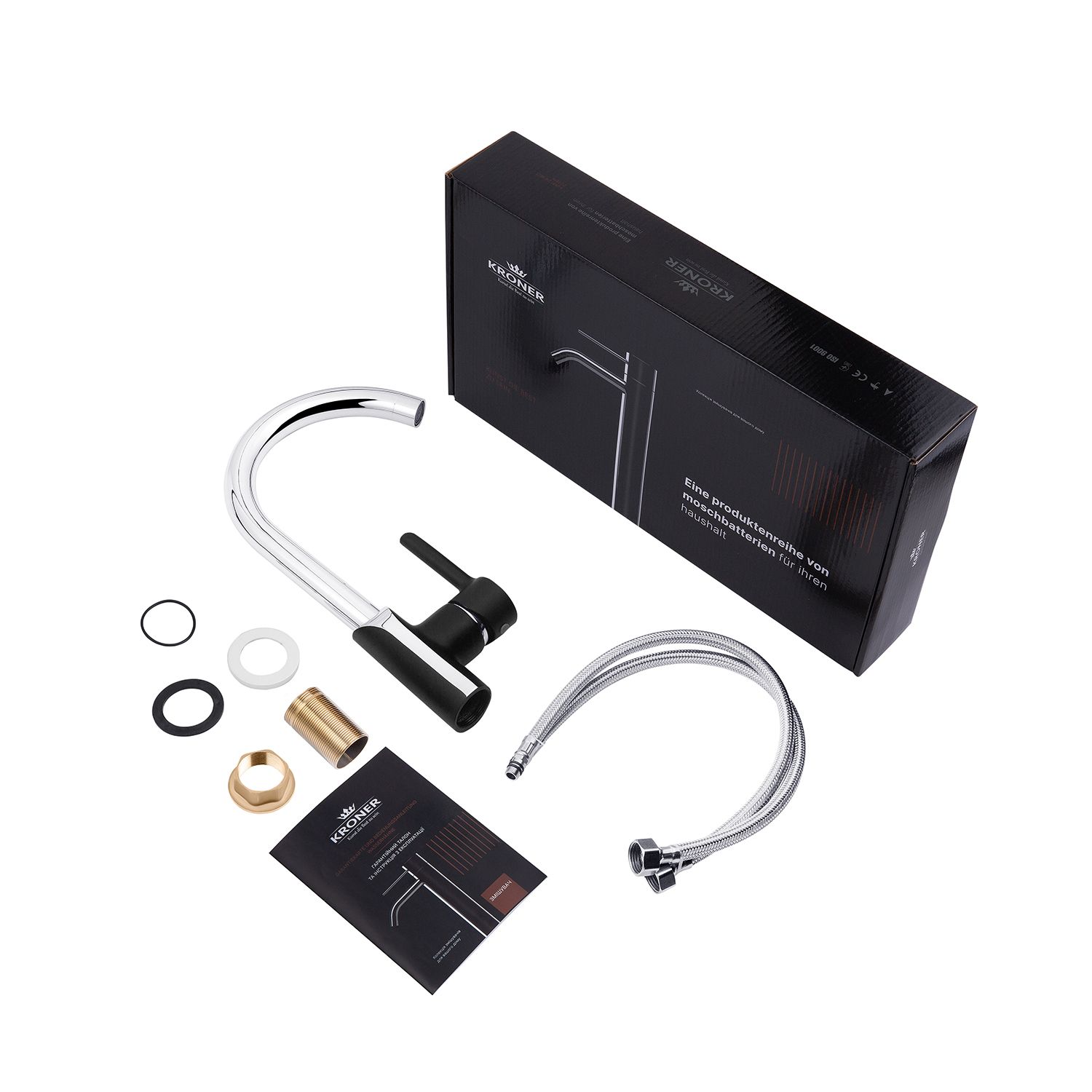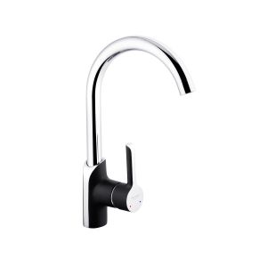 Змішувач для кухні Kroner KRP Essen - SCH030 - ідеальний вибір для вашої кухні. Виготовлений з високоякісної латуні, він гарантує міцність та довговічність. Має привабливу глянцево-матову поверхню хромовано-чорного кольору, що додає йому елегантності. Змішувач оснащений картриджним механізмом змішування, що дозволяє зручно регулювати температуру води. Його унікальна U-подібна форма виливу забезпечує зручність під час наповнення посуду або миття продуктів. Насолоджуйтесь функціональністю і стилем змішувача Kroner.