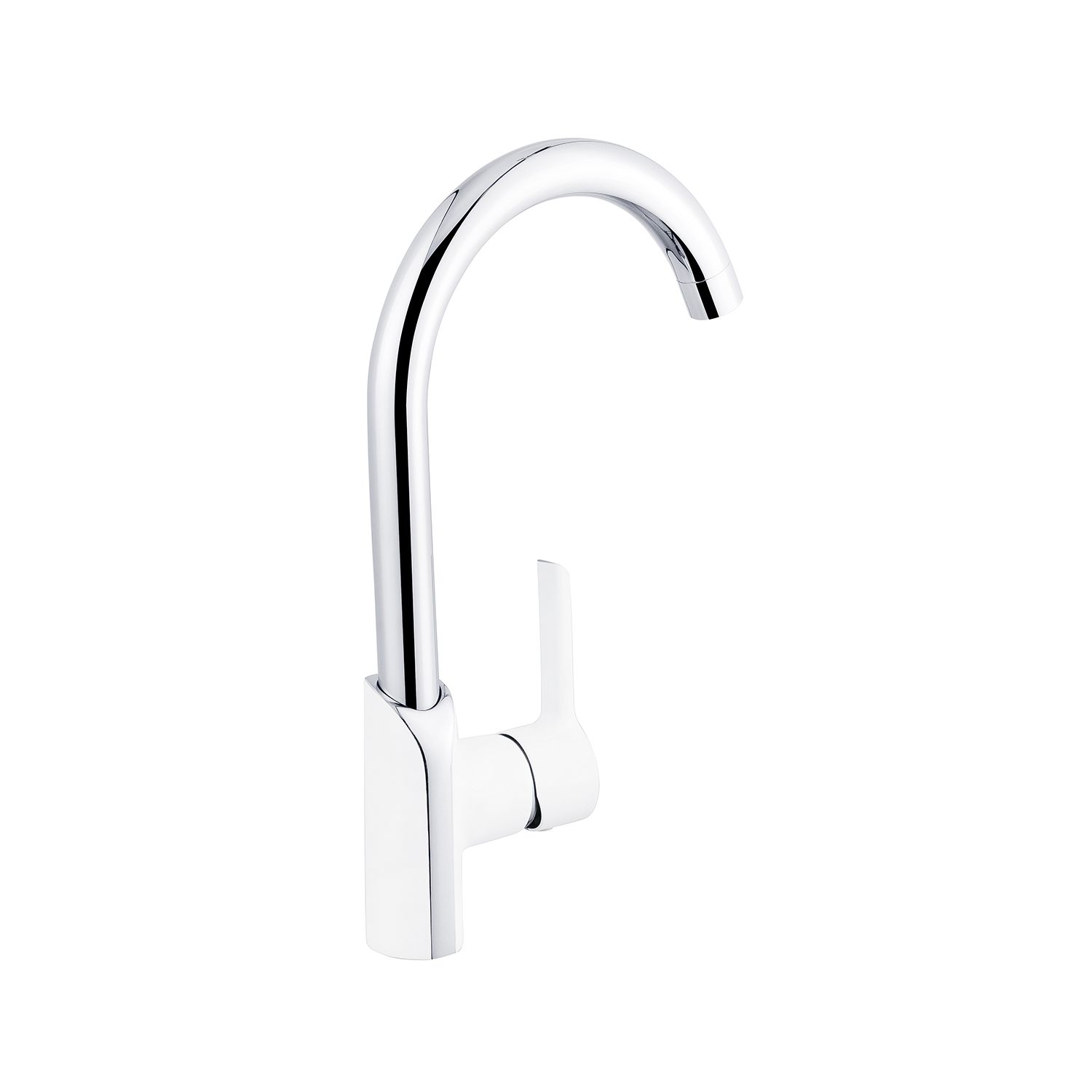 Змішувач для кухні Kroner KRP Essen - W030 - ідеальний вибір для вашої кухні. Виготовлений з високоякісної латуні, він гарантує міцність та довговічність. Має привабливу глянцево-матову поверхню хромовано-білого кольору, що додає йому елегантності. Змішувач оснащений картриджним механізмом змішування, що дозволяє зручно регулювати температуру води. Його унікальна U-подібна форма виливу забезпечує зручність під час наповнення посуду або миття продуктів. Насолоджуйтесь функціональністю і стилем змішувача Kroner.