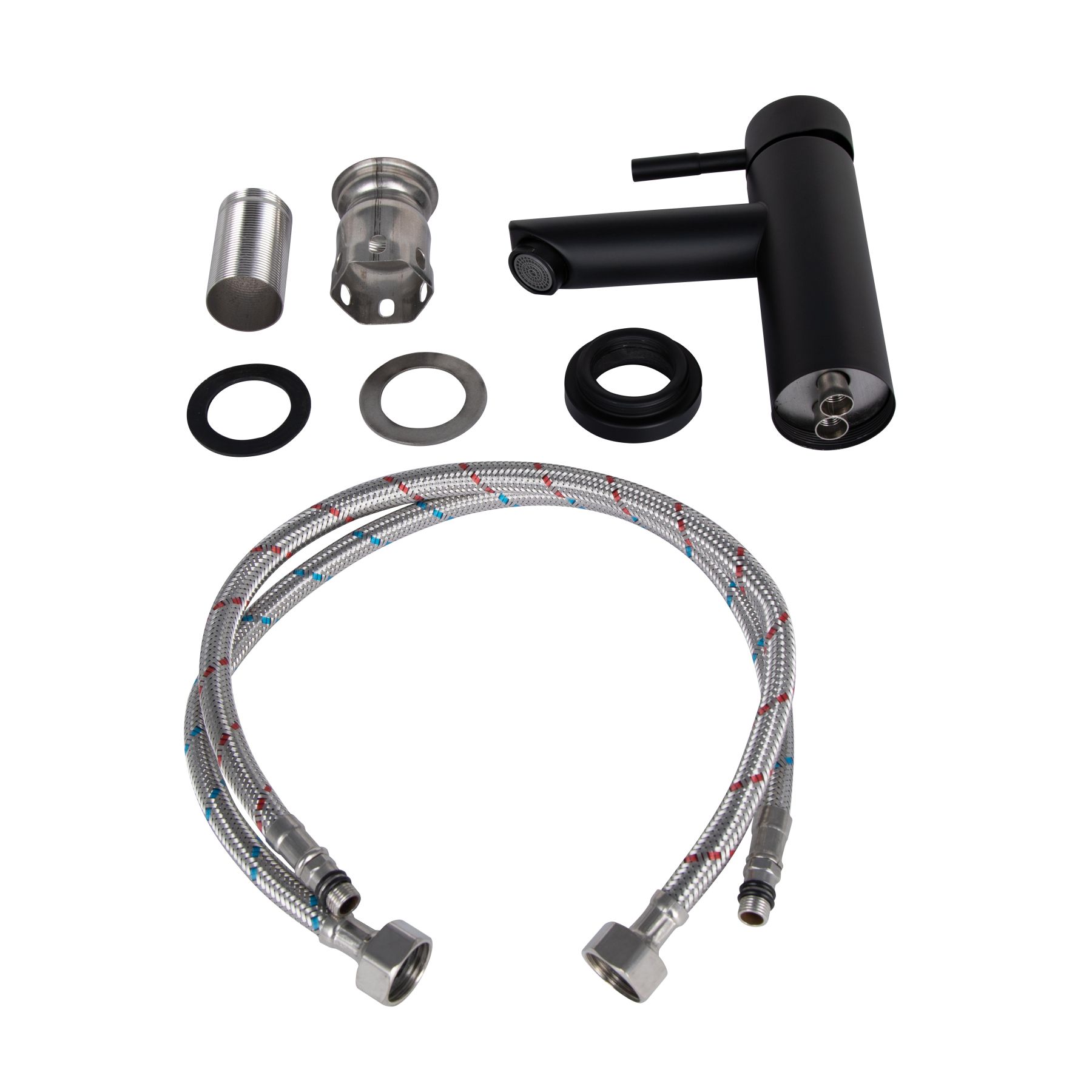 Змішувач для раковини Lidz Aria 001F LDARI001FBLA43367 виготовлений з нержавіючої сталі, яка не схильна до корозії, стійка до ударів і тріщин. Чорна матова поверхня надає змішувачу оригінального зовнішнього вигляду. Інтенсивність водного потоку та температура регулюються за допомогою переміщення важеля. Підключення води відбувається через гнучкі шланги з діаметром підключення 1/2", які входять до комплекту постачання.