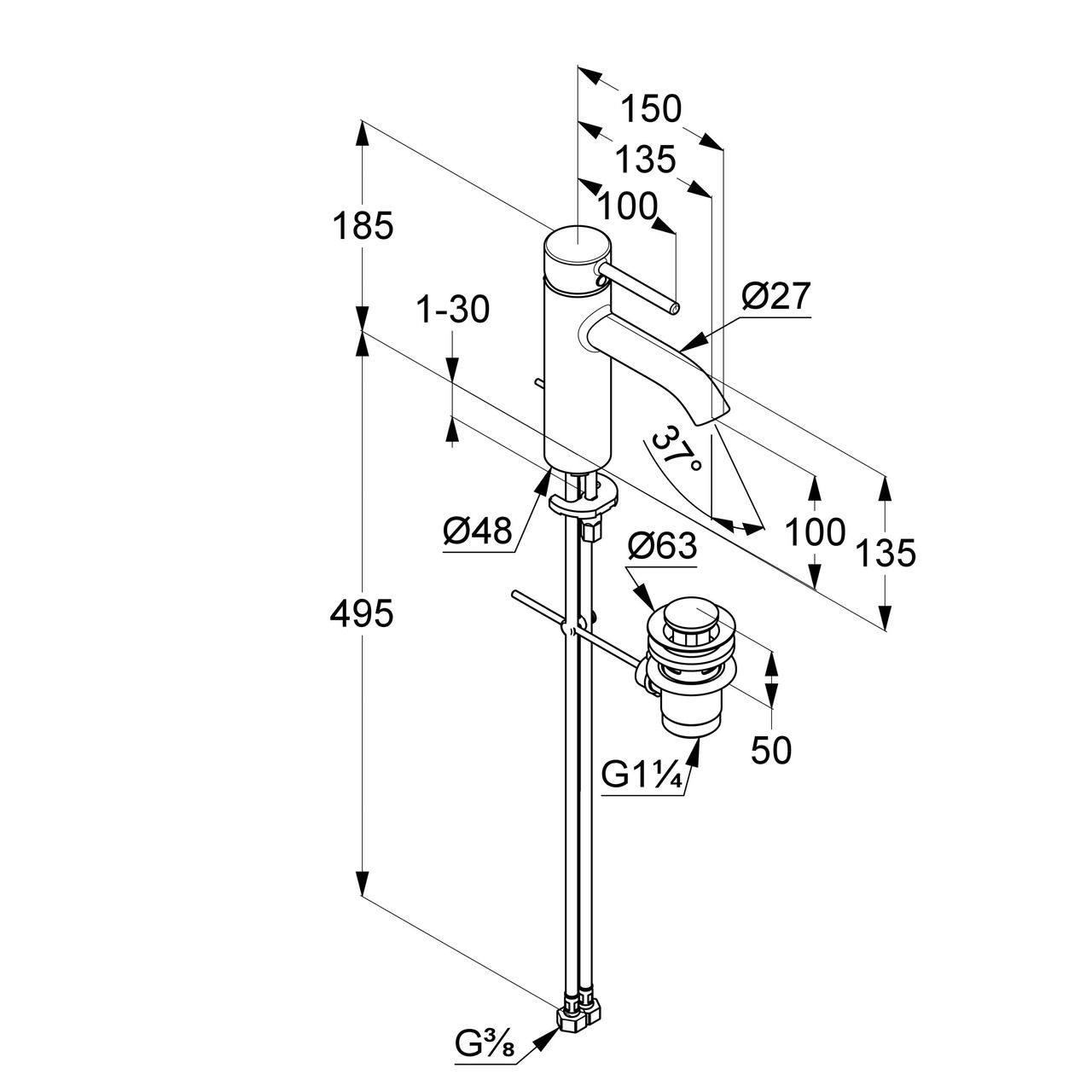 Змішувач для умивальника 100 DN 15 Bozz (382800576), Kludi | 382800576