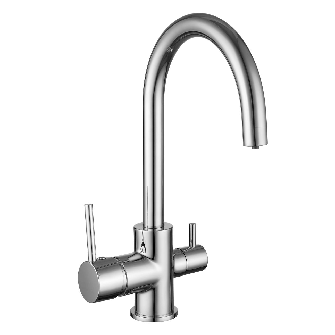 Смеситель для кухни с подключением питьевой воды, настольный, двухрычажный, поворотный излив, хром