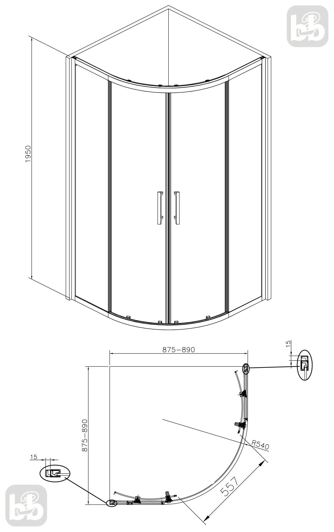 Душевая кабина JOLLY 88*88*195см полукруглая, раздвижная дверь, стекло прозрачное 6мм с покрытием Easy Clean | DM04А001CH