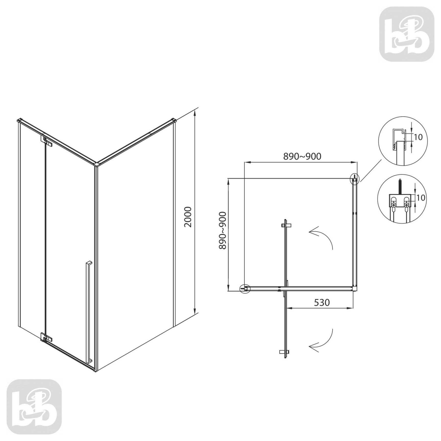 Душевая кабина VACLAV 120*80*200см прямоугольная левая, распашная дверь, стекло прозрачное 8 мм с Easy clean покрытием