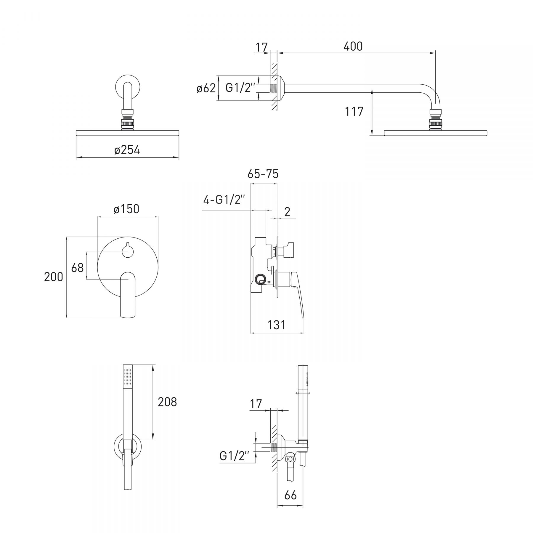 Тип монтажа верхнего душа:Настенный