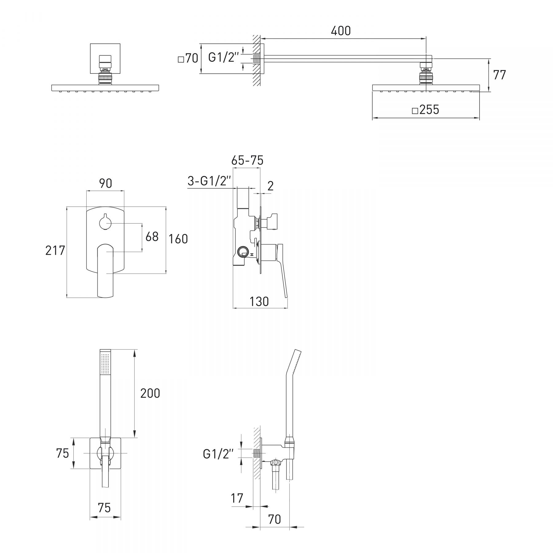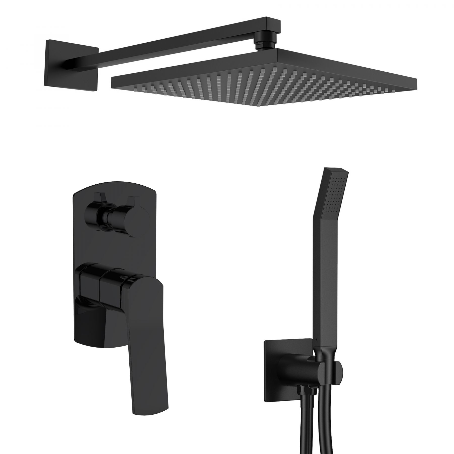 Душевая система Volle скрытого монтажа, смеситель SOLO, верхний душ 255х255мм, черный матовый | SET20220118