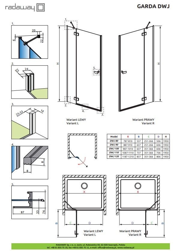 Душевая дверь Radaway Garda Chrome DWJ 900Rx1950 прозрачное стекло | 10710090-01-01R