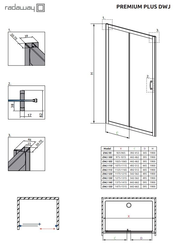 Душевая дверь Radaway Premium Plus Chrome DWJ 1400x1900 прозрачное стекло | 33323-01-01N