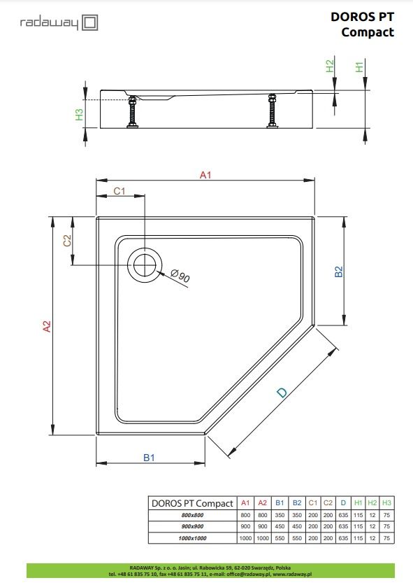 Душевой поддон Radaway Doros PT Compact 800x800x115 белый | SDRPT8080-05