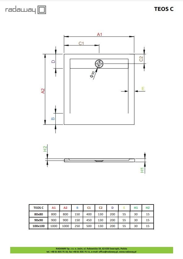 Душевой поддон Radaway Teos С 900x900x40 черный | HTC9090-54