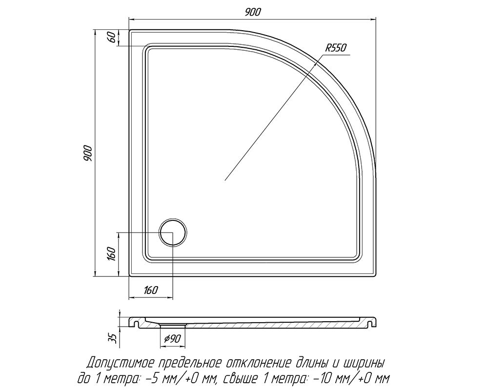 Душевой поддон «Жасмин» 900/R550 Белый А100 глянец | 134A100
