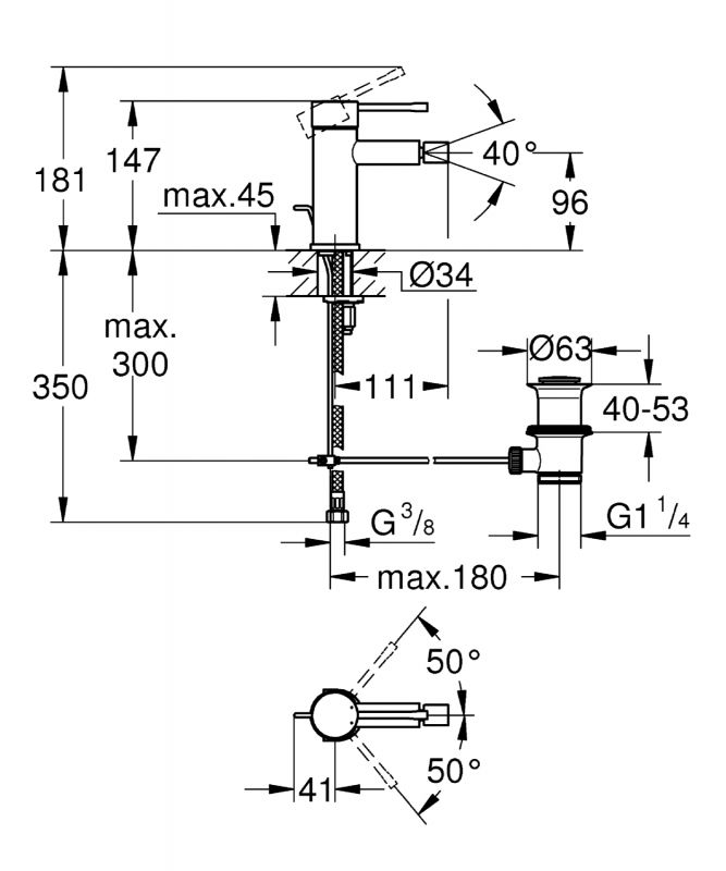 Смеситель для биде, однорычажный, настольный, донный клапан, хром