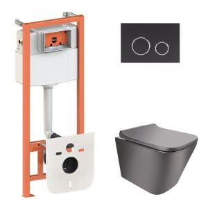 Набор Qtap инсталляция 3 в 1 Nest QT0133M425 с панелью смыва круглой QT0111M11V1146MB + унитаз с сиденьем Tern QT1733052ERMB представляет собой удобное решение для современного санузла. Он комплектуется унитазом, сиденьем, установочной рамой, панелью смыва, звукоизоляционной прокладкой. Благодаря застенному монтажу инсталляции и подвесной конструкции унитаза этот комплект сделает Ваши гигиенические процедуры более комфортными, а уборка не доставит лишних хлопот.