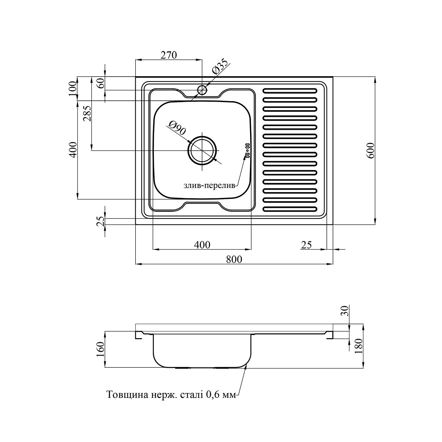 Кухонная мойка накладная Kroner KRP Satin-6080L (0,6 мм) | CV022825