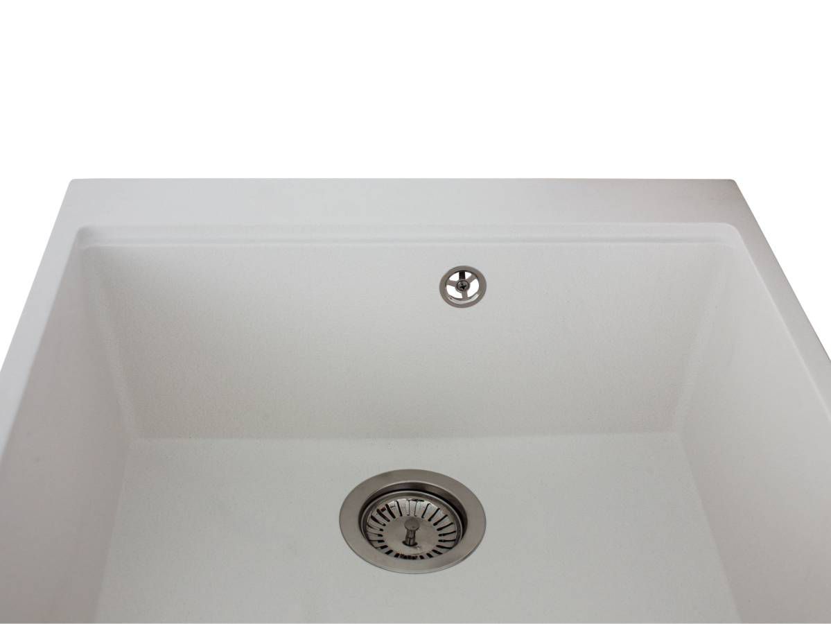 Кухонная мойка Miraggio LAGOON 540 белая имеет однородную текстуру и цвет. Она не впитывает запахи, отталкивает жир и загрязнения, а также не меняет своего цвета в процессе использования.