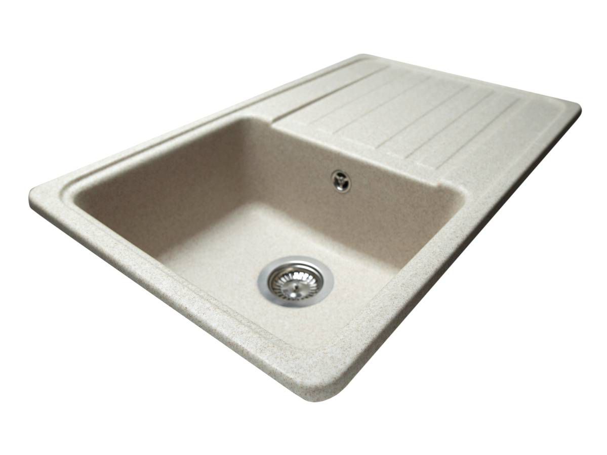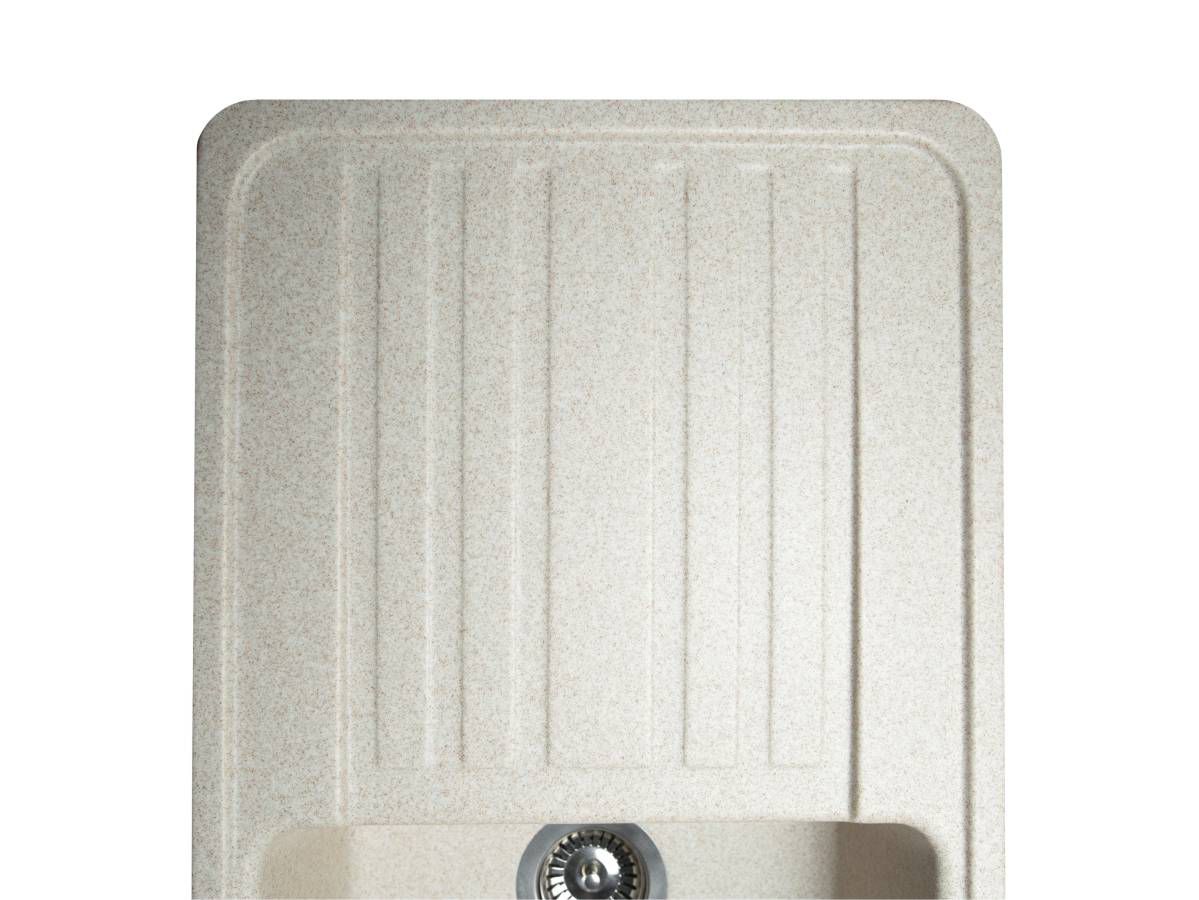 Кухонная мойка Miraggio VERSAL песочная на 80% состоит из кварцевого песка и на 20% из полиэфирной смолы, которая обеспечивает прочность этого изделия. Кухонная мойка Miraggio выдерживает перепады температур от -70 до +70 °C и не поддается воздействию агрессивных бытовых красителей.