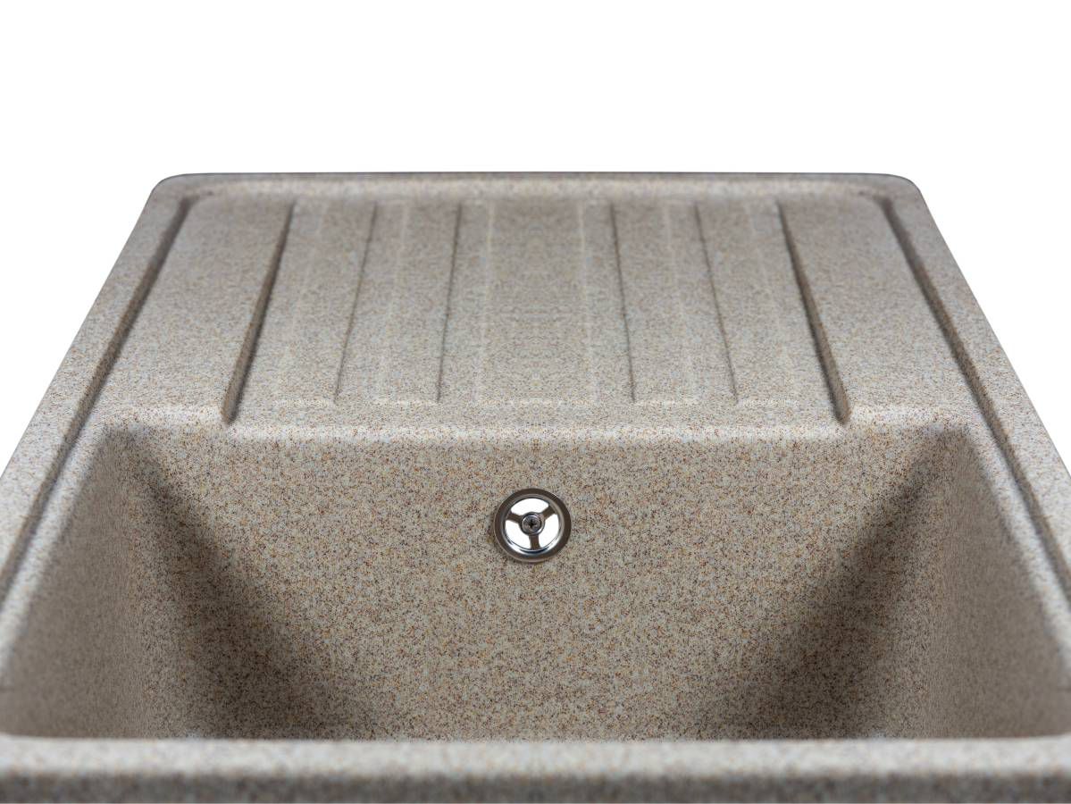 Кухонная мойка Miraggio VERSAL терра на 80% состоит из кварцевого песка и на 20% из полиэфирной смолы, которая обеспечивает прочность этого изделия. Кухонная мойка Miraggio выдерживает перепады температур от -70 до +70 °C и не поддается воздействию агрессивных бытовых красителей.