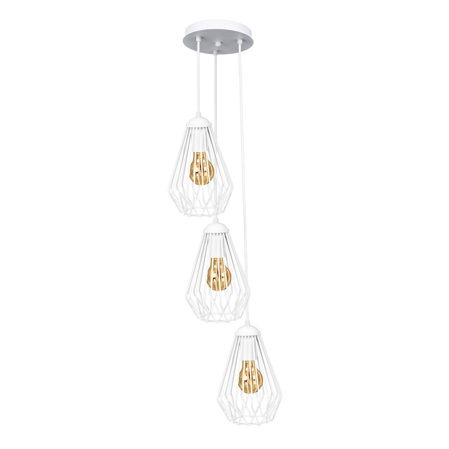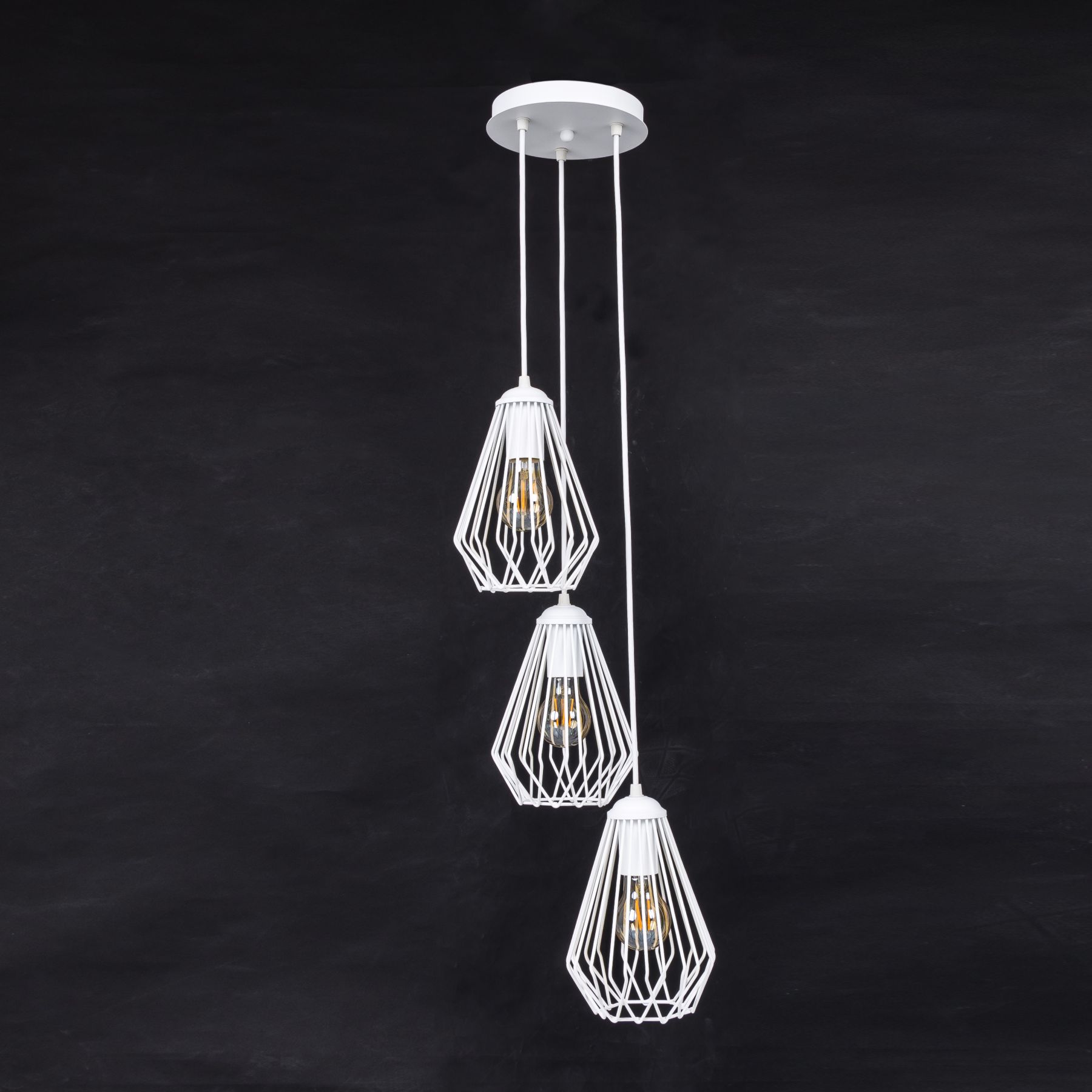 Эта люстра (подвесной светильник) создана брендом Atmolight в рамках большого семейства светильников Capella. Все плафоны семейства изготовлены из металлической проволоки. Этому чрезвычайно практичному материалу на специальных станках можно придать самые разнообразные формы и линии: плавные и ломаные, округлые и кристалообразные – так можно создать плафоны широкого диапазона стилей – от лофта и кантри до техно и хай-тека. Проволока создает контур плафона, придает ему стиль, но не задерживает свет лампы внутри плафона. Плафон полностью прозрачен для света – именно поэтому светильники семейства Capella прекрасно выполняют функции общего освещения. Люстра состоит из трех плафонов, которые с помощью проводов регулируемых по высоте крепятся к потолочному диску диаметром 180мм. Длина каждого провода 1 метр, регулируются независимо друг от друга. Лампочки не идут в комплекте поставки. Используйте лампы LED с цоколем Е27.