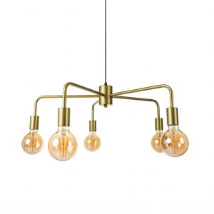 Люстра (Светильник подвесной) Star состоит из пяти открытых лучей без плафона. Каждый лучь изогнут вниз и заканчивается патроном Е27 в металлическом кожухе. Светильник покрыт порошковой краской цвета "Золото". Диаметр светильника (максимальный, без лампочек): 660 мм. Длина провода регулируется от 100см и меньше.