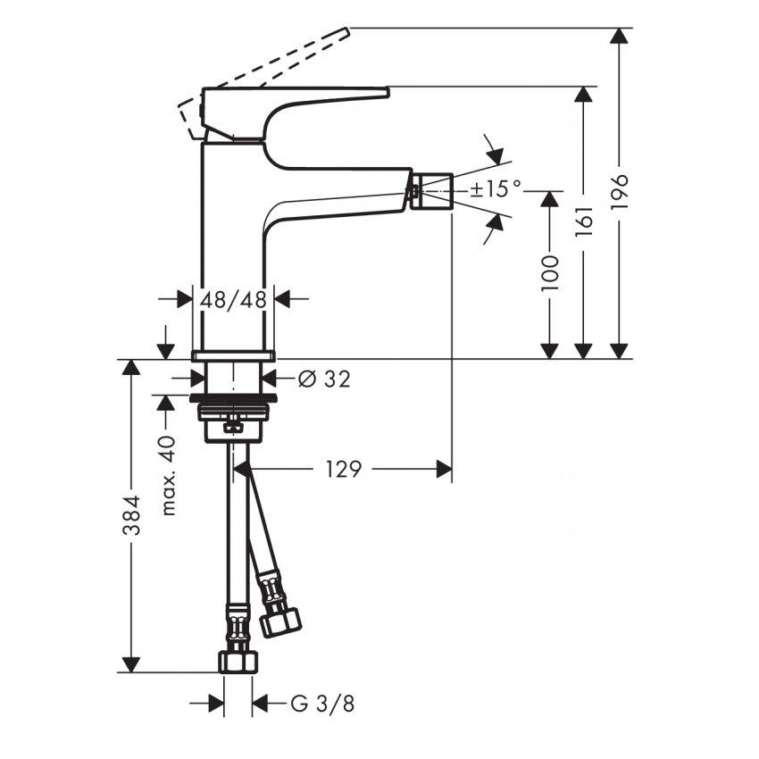 METROPOL смеситель для биде однорычажный с петлеобразной ручкой и сливным гарнитуром Push-Open, хром | 74520000