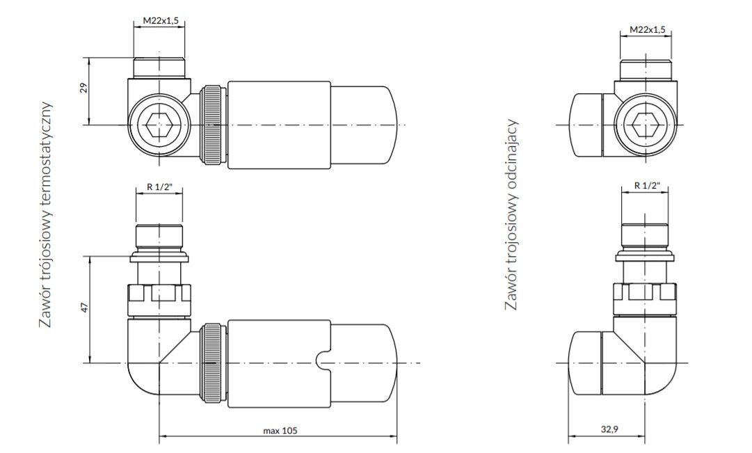 Набор вентилей трехосный термостатический правый черный мат Vision All in One Terma | TGETVISIPK9M5