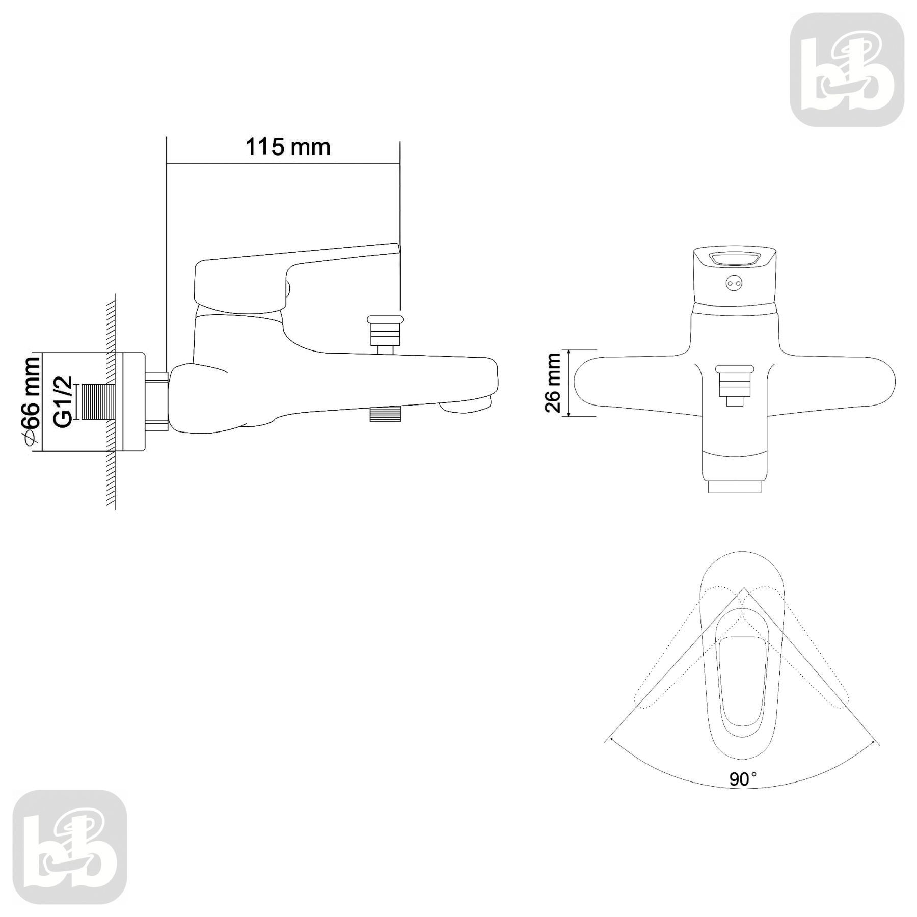 NARCIZ смеситель для ванны однорычажный, хром 40мм | RBZ100-3