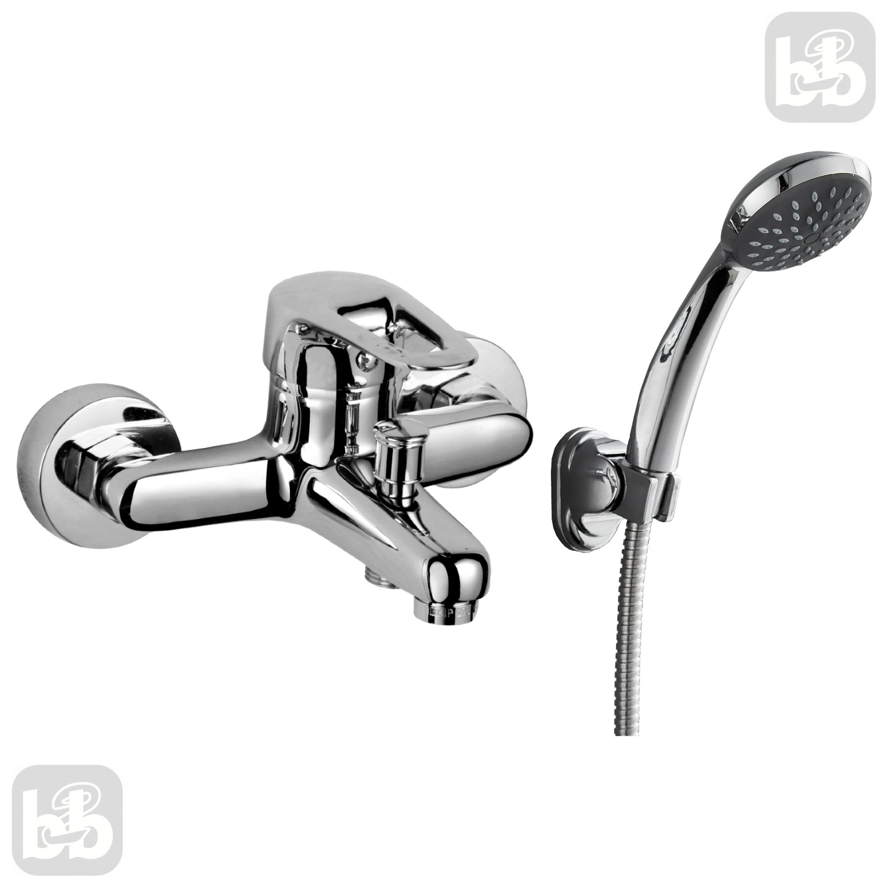 Смеситель для ванны однорычажный, хром, в комплекте: шланг, лейка, держатель. Материал - латунь.