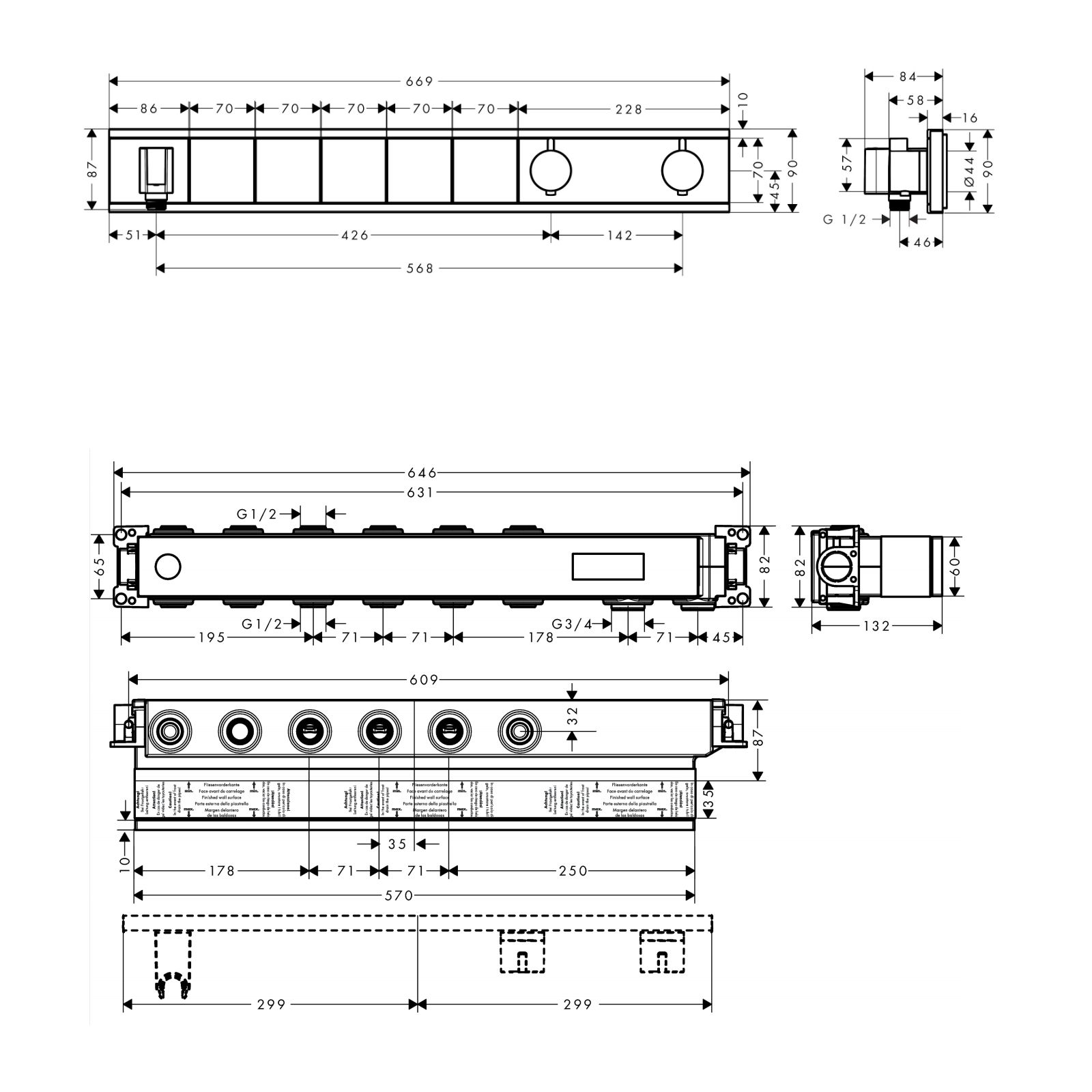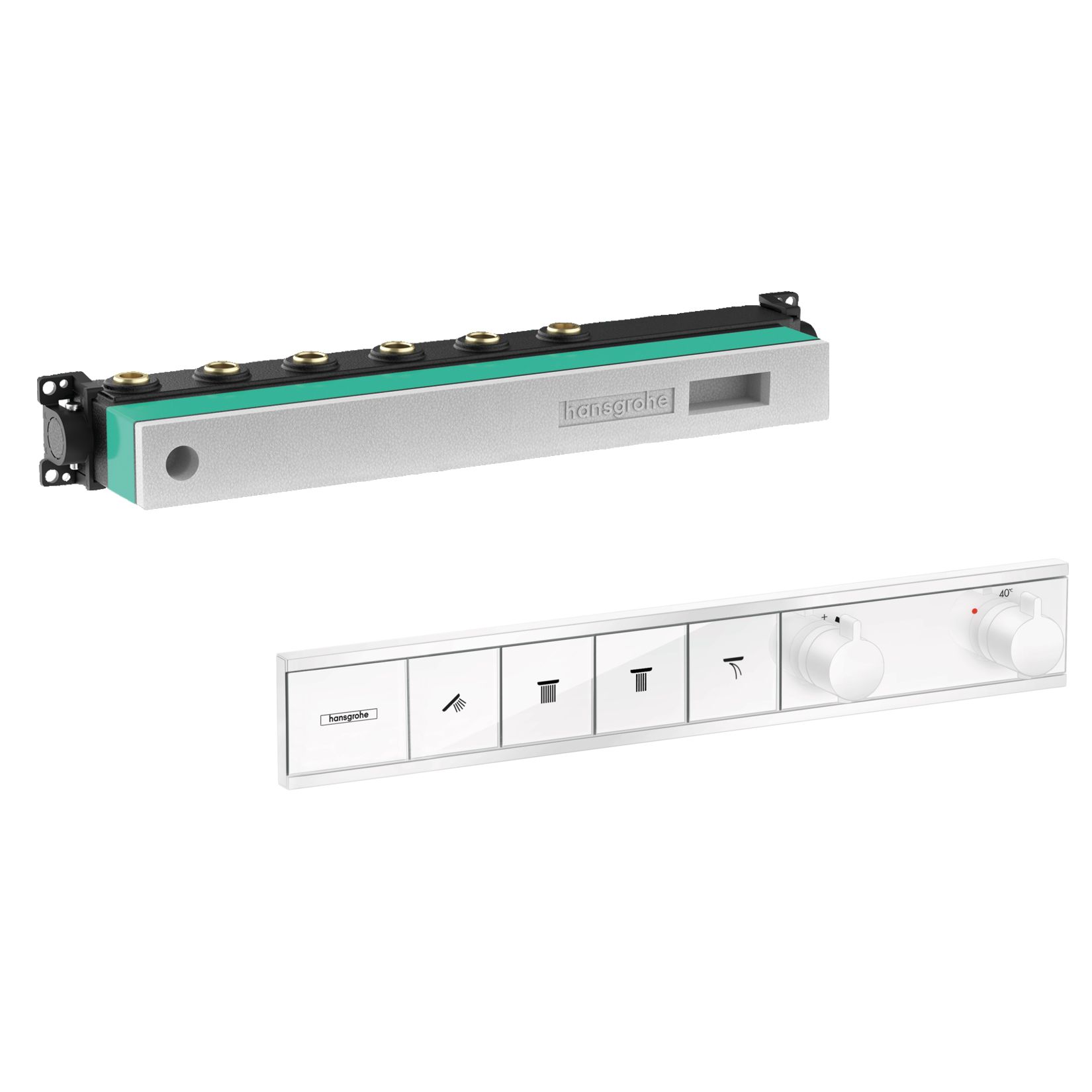 RAINSELECT термостат для 4 потребителей, скрытого монтажа, цвет покрытия белый матовый+RAINSELECT скрытая часть на 4 потребителя (в ПОДАРОК) | 15382700+15312180