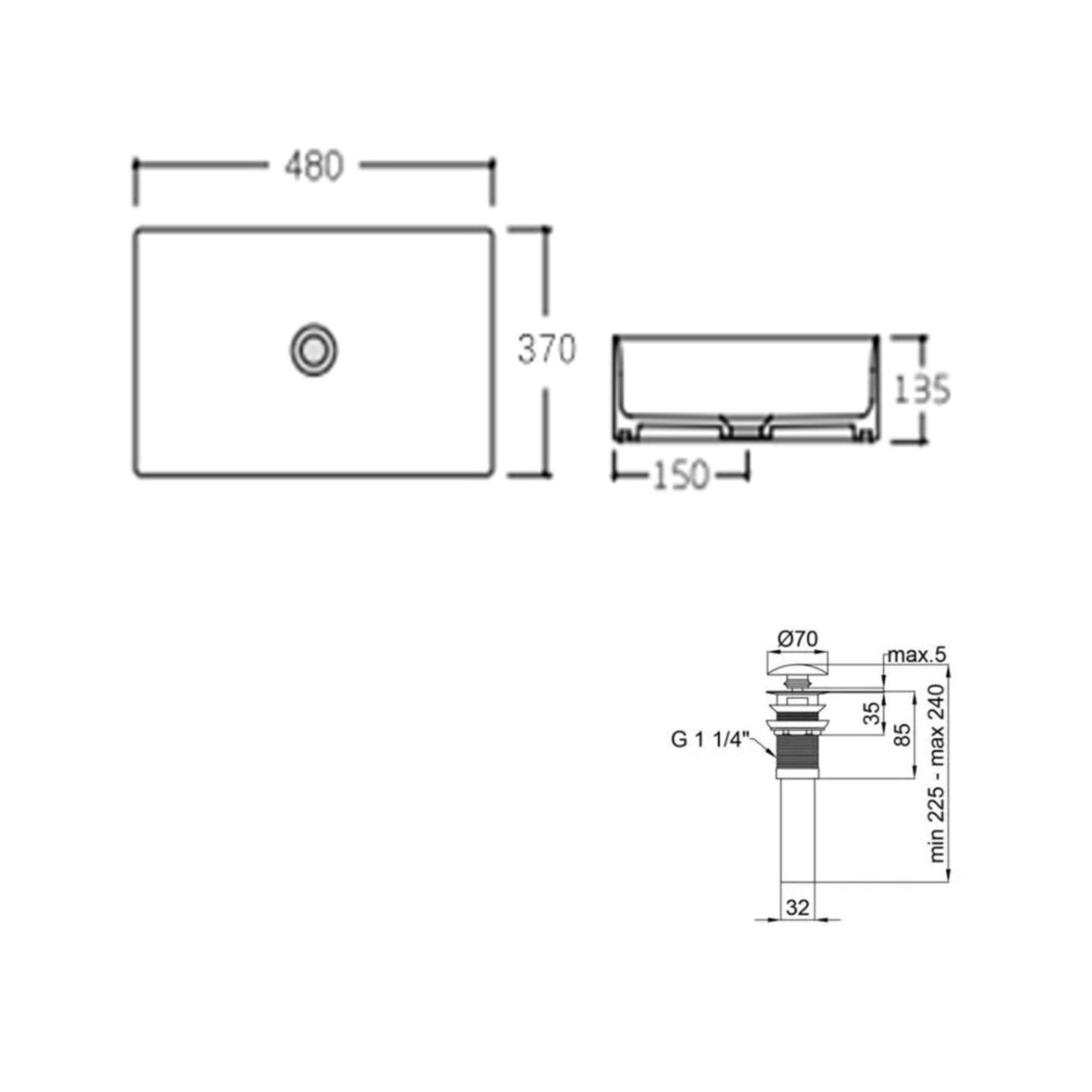Комплект Qtap Tern: Накладная раковина прямоугольная Matt Black + Донный клапан PU03: Современный комплект с накладной раковиной в матовом черном цвете и донным клапаном PU03. Компактные размеры (480х370х135 мм) и прямоугольная форма делают этот набор отличным выбором для стильных интерьеров, добавляя особенность дизайна ванной комнаты.