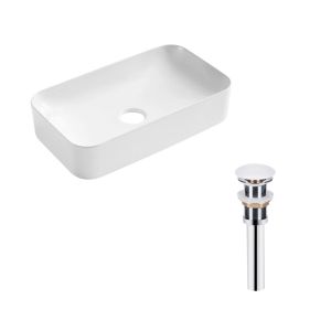 Раковина накладная прямоугольная 605x350x140 мм WHITE + Донный клапан PU02 | SD00053428