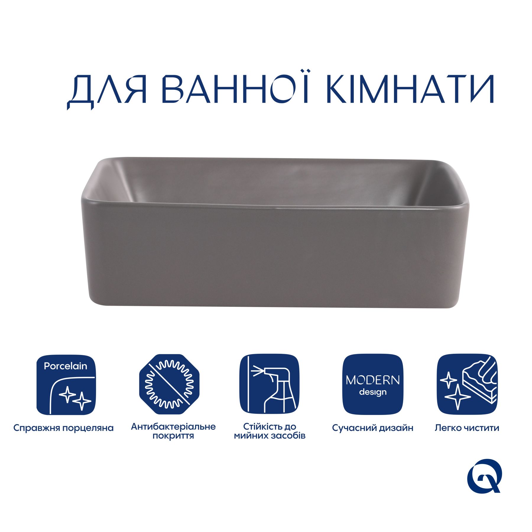 Раковина накладная Qtap Tern 480x370x135 мм, Stone grey, прямоугольная, с донным клапаном QT17116069SG | SD00054301