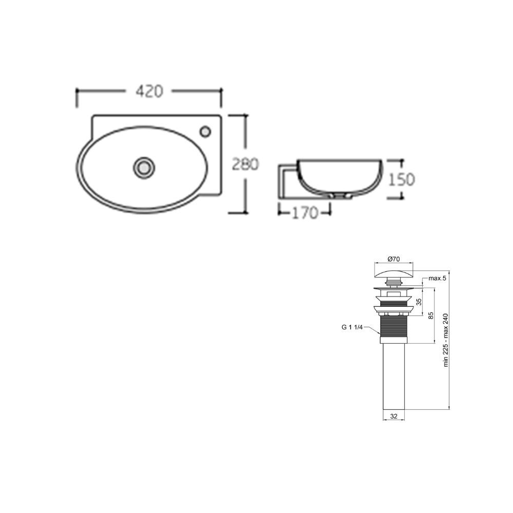 Комплект Qtap Leo: Раковина подвесная овальная левая White+ Донный клапан PU02O: Овальная подвесная раковина для левой установки с размерами 420x280x150 мм. Белое покрытие и минималистичный дизайн создают аккуратный и современный вид.