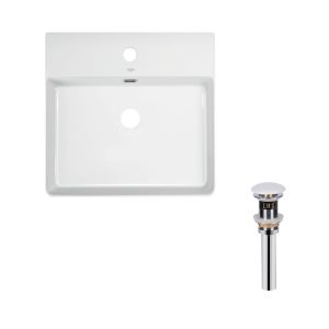 Раковина подвесная прямоугольная 500х420х120 мм White + Донный клапан PU02O | SD00053447