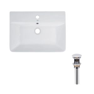 Раковина подвесная прямоугольная 600x420x140 мм White + Донный клапан PU02O | SD00053453