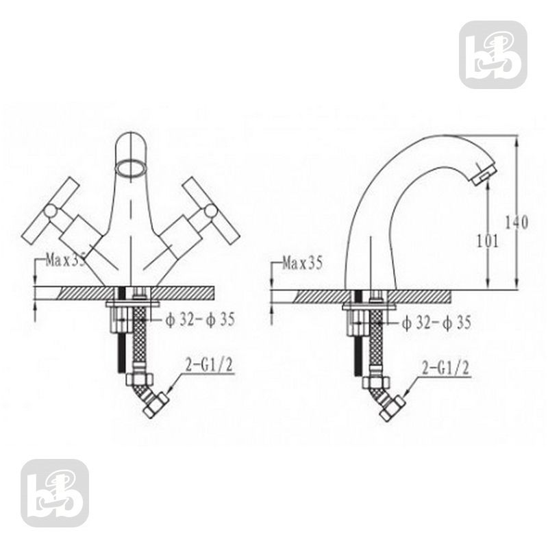 RALSKO NEW смеситель для биде, хром, 1,2 Крестовые рукоятки, керамический узел смешивания, расход воды до 7 л/мин, аэратор, подходит для проточных нагревателей