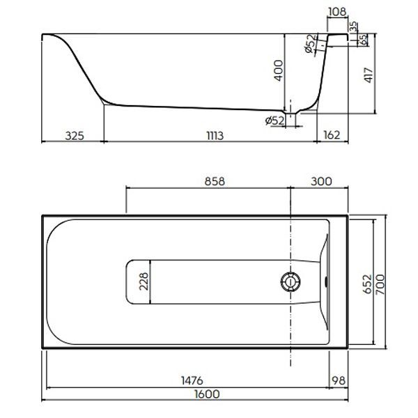 Ванна акриловая KOLO REKORD 160*70, прямоугольная, без ножек | XWP3660000N