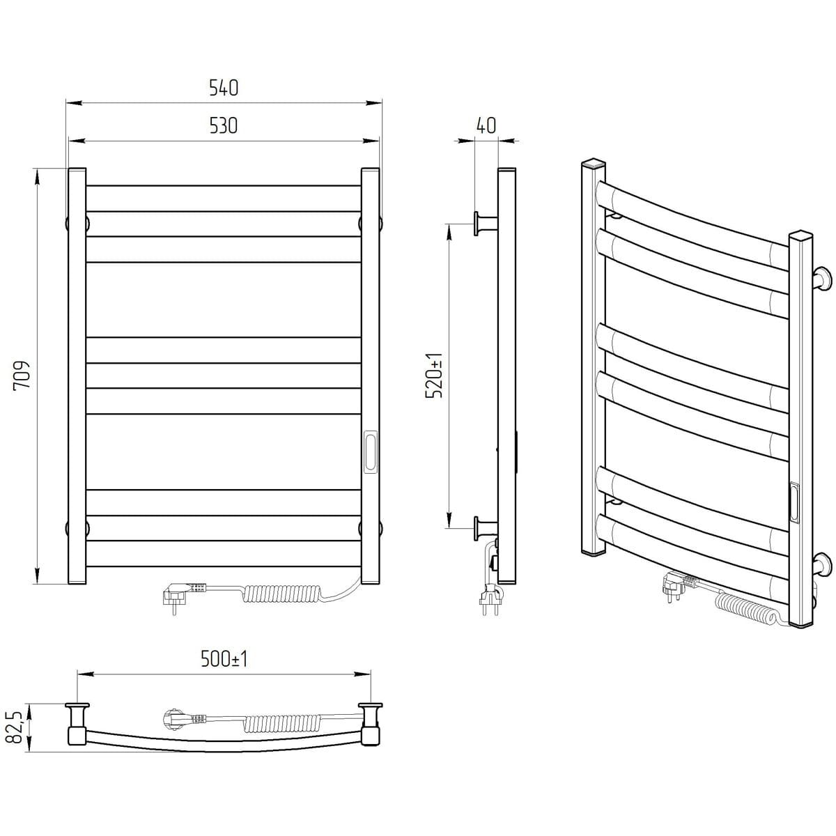 Полотенцесушитель АТЛАНТ ЧФЧ6, 500*700, правый R3, черный мат | 73207618