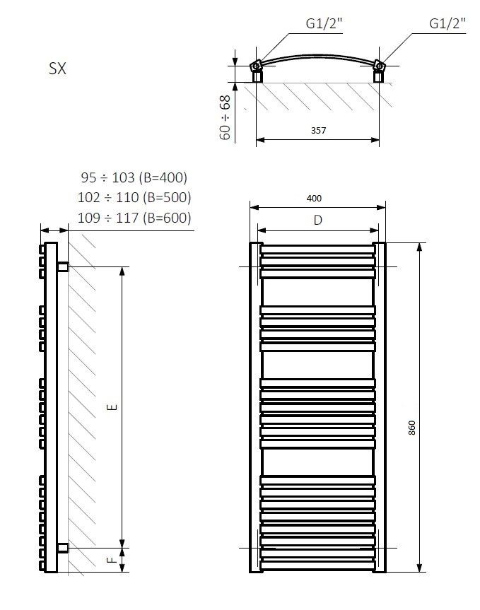 Рушникосушка Dexter 400х860 хром SX код 6705