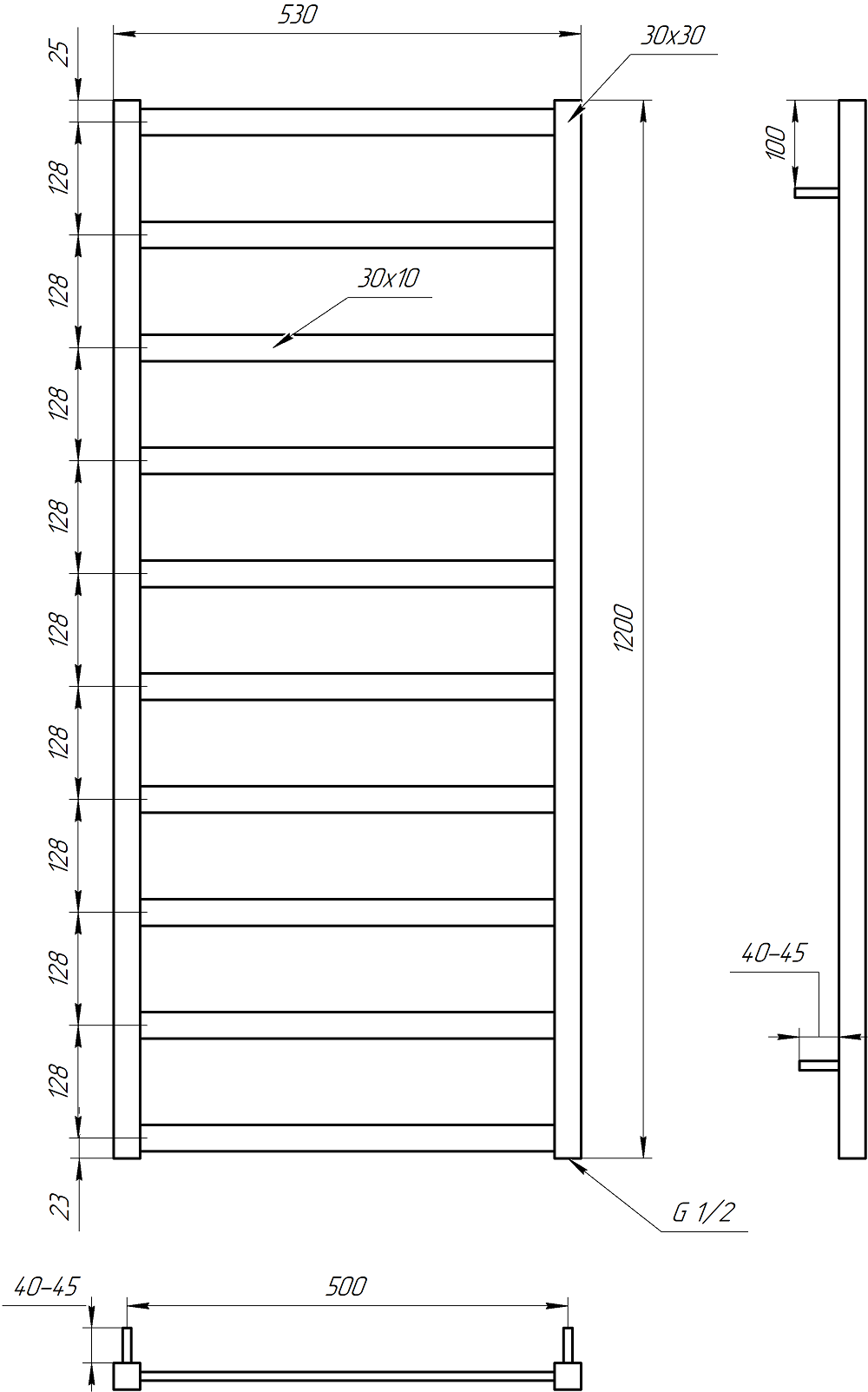 Преимущество такого полотенцесушителя в том что он является батареей и теплоотдача у него в разы выше чем у полотенцесушителей с электрическим сухим тэном, то есть наш полотенцесушитель может отопить помещение.